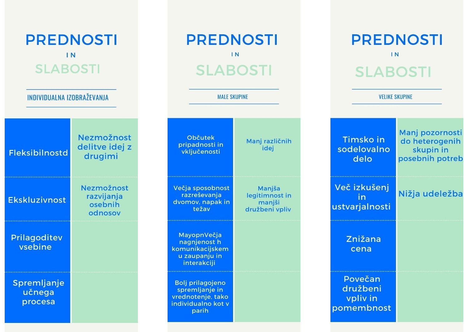 - Raznolikost informacijskih in poučnih medijev, kjer lahko združujemo ustne in pisne dejavnosti, ilustracije in animirane situacije.